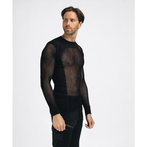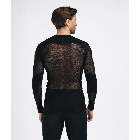 Miesten ainutlaatuinen pitkähihainen verkkoaluspaita. Lämpötilan hallinnan ja mukavuuden kannalta luonnonkuitujen yhdistäminen tekokuituihin on ylivoimaisen hyvä ratkaisu. WoolNet-rakenne, jossa käytetään pehmeää merinovillaa, on aina sopivan lämpöinen ja erittäin hyvin hengittävä. Kuitu imee jopa 30 % kosteutta itseensä, ennen kuin se alkaa tuntua märältä.