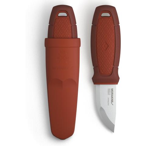 Kahva on valmistettu kahdesta erilaisesta polymeeristä, ja kylkien TPE pinta tarjoaa erinomaisen otteen tehostaen työskentelyä. Sekä kahvassa että tupen kärjessä reikä narulle. Käytännöllinen ja helposti puhdistettava polypropyleenituppi, jonka väri on yhtenevä kahvan värin kanssa. Symmetrinen muoto mahdollistaa puukon laittamisen tuppeen molemmin päin. Puukko lukittuu tuppeen Click Lock lukituksella, joka varmistaa puukon pysymisen tupessa myös kaulanauhassa kuljetettaessa. Puolihimmeän, Scandi Grind profiilihiotun terän materiaali ruotsalainen ruostumaton 12C27 erikoisteräs, joka on käsitelty Moraknivin salaisella lämpökäsittelyllä. Pysyy erittäin terävänä pitkään. Kokonaispituus: 143 mm. Terän pituus: 59 mm. Terän paksuus: 2 mm. Puukon paino vain 58 g. Kokonaispaino 80 g. Materiaali- ja valmistusvirhetakuu 10 vuotta. Valmistusmaa Ruotsi.
