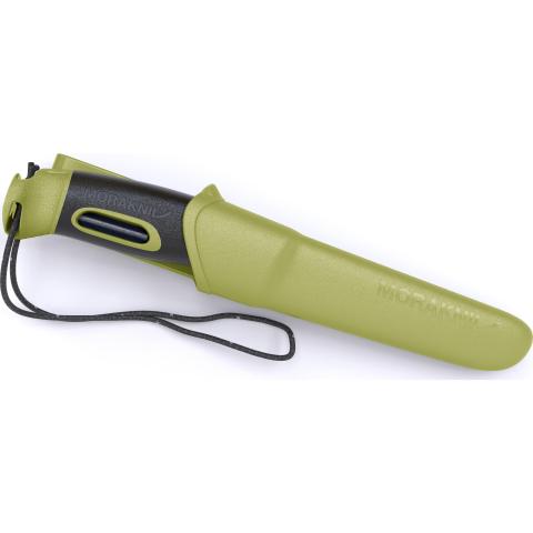 TPE (Thermo Plastic Elastomer) kahva, jonka kuviointi tarjoaa erinomaisen otteen, tarjoaa tarkkuutta tehostaen työskentelyä ja tuntuu miellyttävältä myös kylmissä olosuhteissa. Kovaakin käyttöä kestävä ¾ tang terä Scandi Grind profiilihionnalla. Terän materiaali ruotsalainen ruostumaton 12C27 erikoisteräs, joka on käsitelty Moraknivin salaisella lämpökäsittelyllä. Pysyy terävänä pitkään ja sietää kosteitakin olosuhteita. Hamarapuoli hiottu 90-asteen kulmaan, joka on ihanteellinen tulustikun tehokkaaseen käyttöön. Kokonaispituus: 238 mm. Terän pituus: 104 mm. Terän paksuus: 2,5 mm. Puukon paino 128 g. Kokonaispaino 198 g. Muovituppi on klipsin ansiosta helppo kiinnittää vyölle tai reppuun. Pohjassa vedenpoistoaukko. Materiaali- ja valmistusvirhetakuu 10 vuotta. Valmistusmaa Ruotsi.