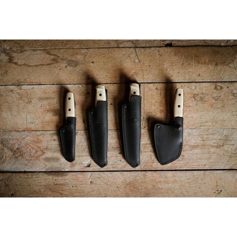 Toimitetaan piikkiin ripustettavassa kierrätetystä materiaalista valmistetussa retail -lahjapakkauksessa, jonka mitat: 28 cm x 7 cm x 4,9 cm. Pakkaukseen kuuluu: Puukko ja nahkatuppi.