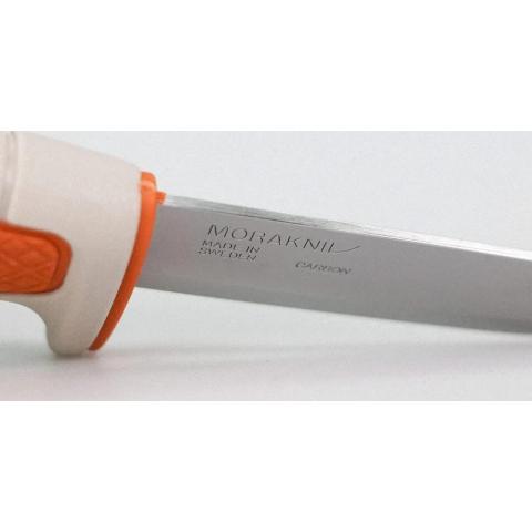 Terä on valmistettu saksalaisesta hiiliteräksestä, joka tarjoaa pitkäkestoisen terävyyden.