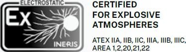 Kaasu: ATEX IIA, IIB, IIC (= Propaani. Etyleeni- Vety, asetyleeni)