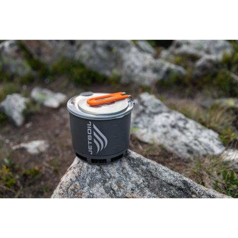 Erittäin suorituskykyinen ja varmatoiminen poltinosa. Patentoitu, tuulisuojattu FluxRing-pohja siirtää lämmön tehokkaasti ja tasaisesti kuppiin. Lämmönsiirtokapasiteetti 4 500 BTU (1,32 kW), jolla keitin keittää 0,5 litraa vettä kiehuvaksi 2 min 30 sekunnissa Jetpower kaasulla! Keittoastiassa on eristetty kahva, joka kääntyy kuljetuksen ajaksi kattilan päälle. Poltin sytytetään esimerkiksi tulitikulla tai tuluksella.