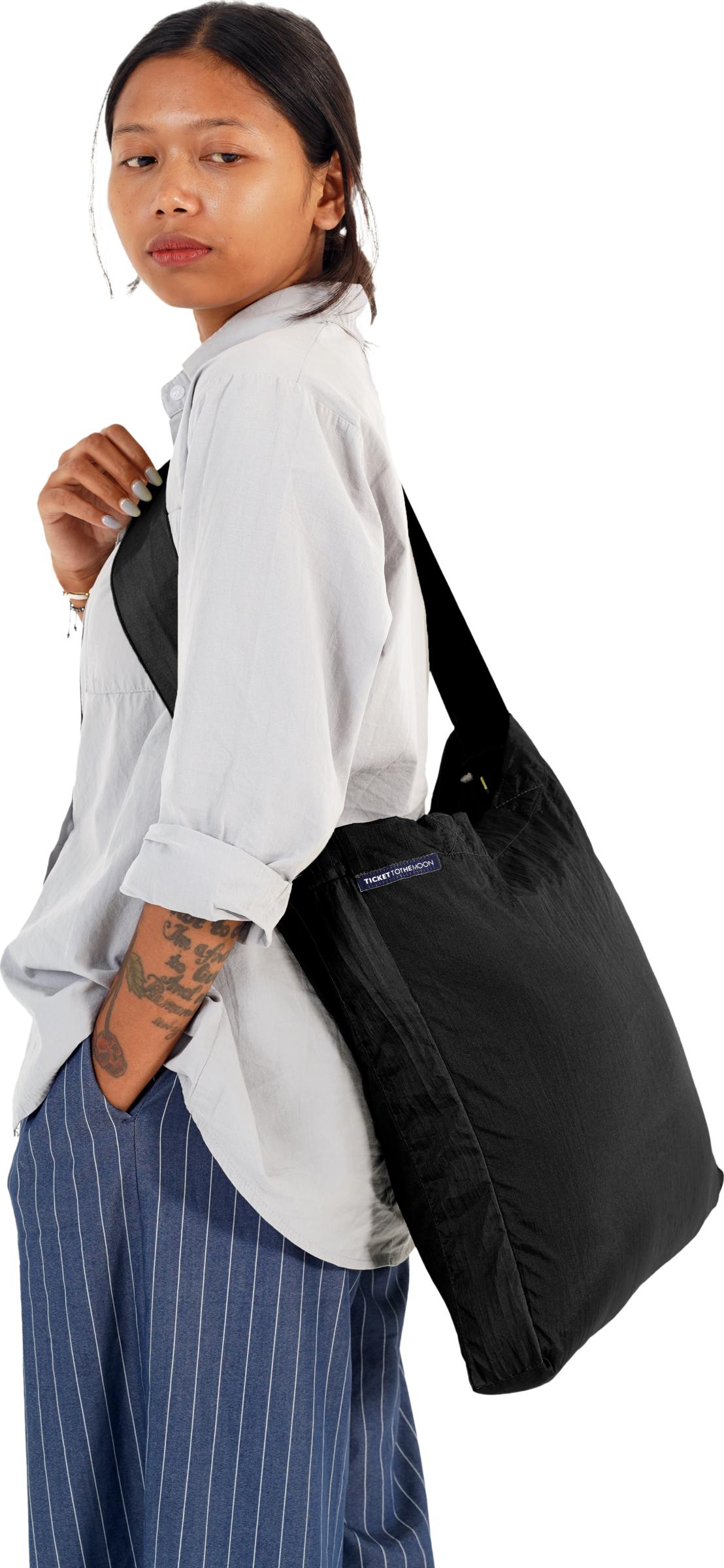 Ticket To The Moonin keskikokoinen ostoskassi joka on suunniteltu helposti esiin otettavana ja takaisin pakattavana päivittäiseen käyttöön.