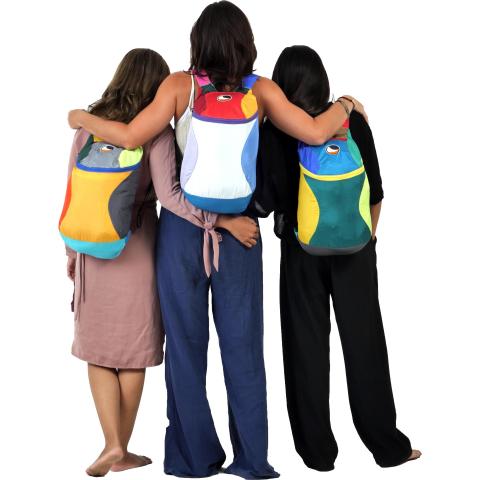 Erittäin pieneen, integroituun kuljetuspussiin pakkautuva tyylikäs reissureppu, kulkee mukana vaikka taskussa.