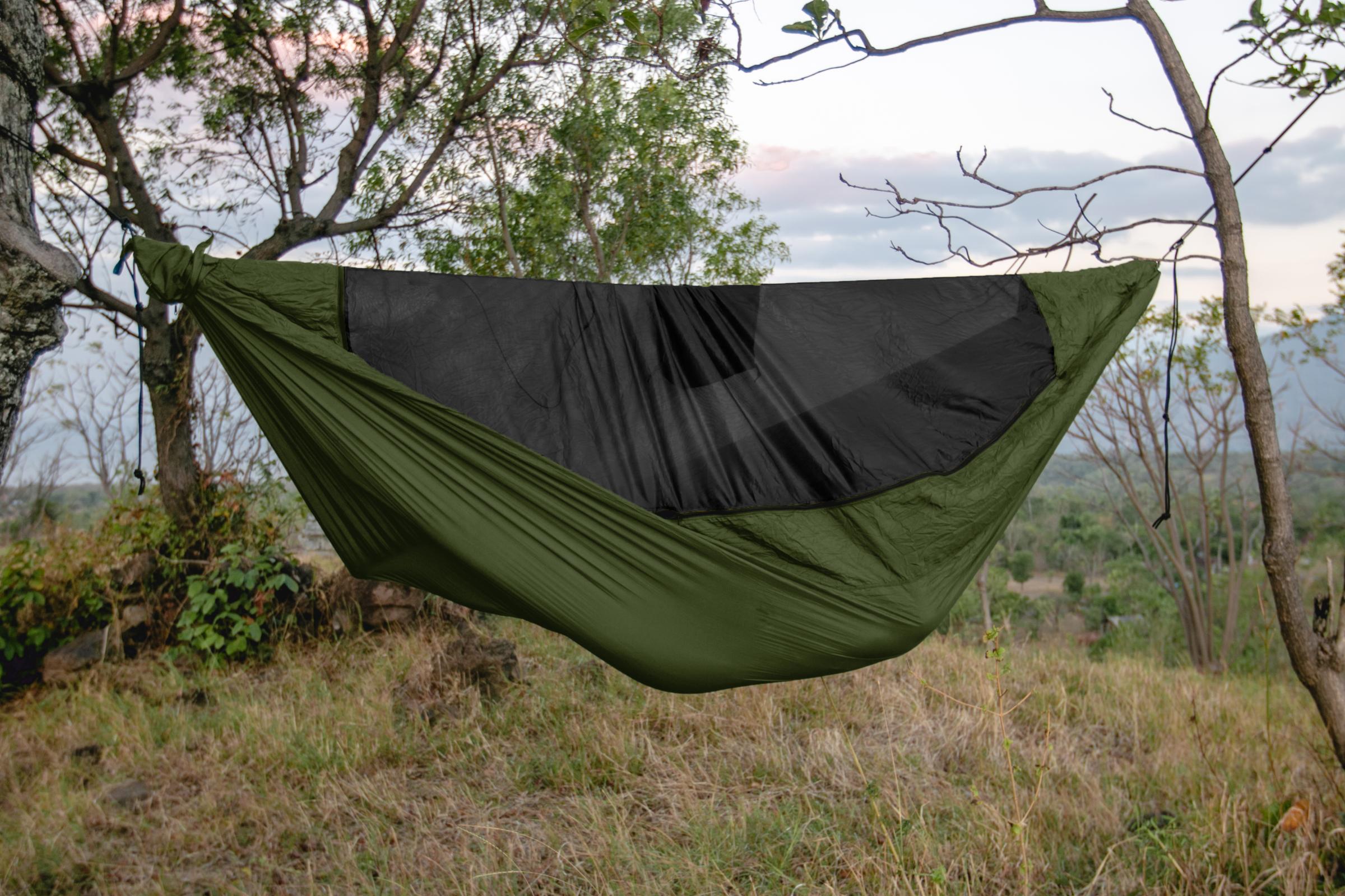 Hyttysverkon silmäkoko on 200 reikää / cm2. Pienetkään ötökät eivät pääse sen läpi, mutta ilma kulkee hyvin. Verkon ripustusnaru pitää myös itse riippumaton optimaalisessa muodossa (2,8 m +/-10 cm). Pakkauspussi toimii säilytyspussina ja sen saa nukkumisen ajaksi kiinni ripustusnaruun.