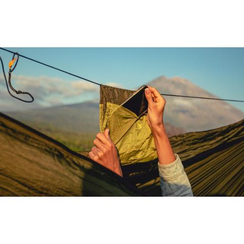 Hyttysverkon silmäkoko on 200 reikää / cm2. Pienetkään ötökät eivät pääse sen läpi, mutta ilma kulkee hyvin. Verkon ripustusnaru pitää myös itse riippumaton optimaalisessa muodossa (2,8 m +/-10 cm). Pakkauspussi toimii säilytyspussina ja sen saa nukkumisen ajaksi kiinni ripustusnaruun.