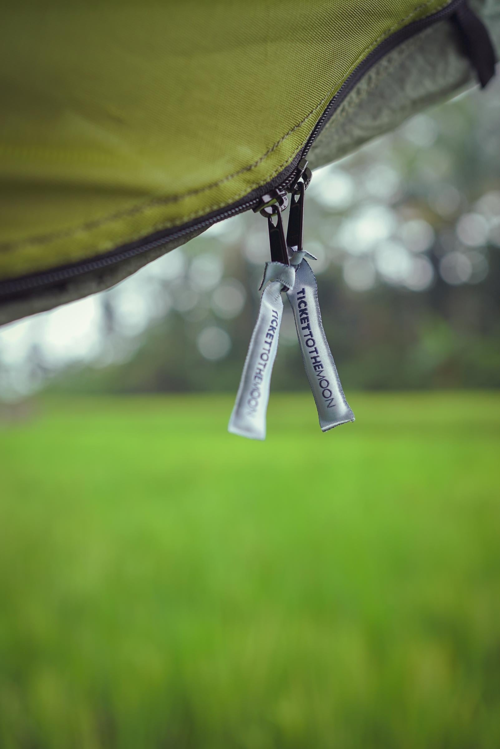 Riippumaton mukana toimitetaan pienet sulkurenkaat kiinnittämistä varten. Kiinnitysköydet eivät sisälly toimitukseen. Suosittelemme lisätarvikkeista löytyviä helppoja ratkaisuja: Puita suojaavaa ja kevyttä Lightest Strap -nauhaa, puita suojaavaa Moon Strap-nauhaa tai Nautical Ropes -kiinnitysköysiä.