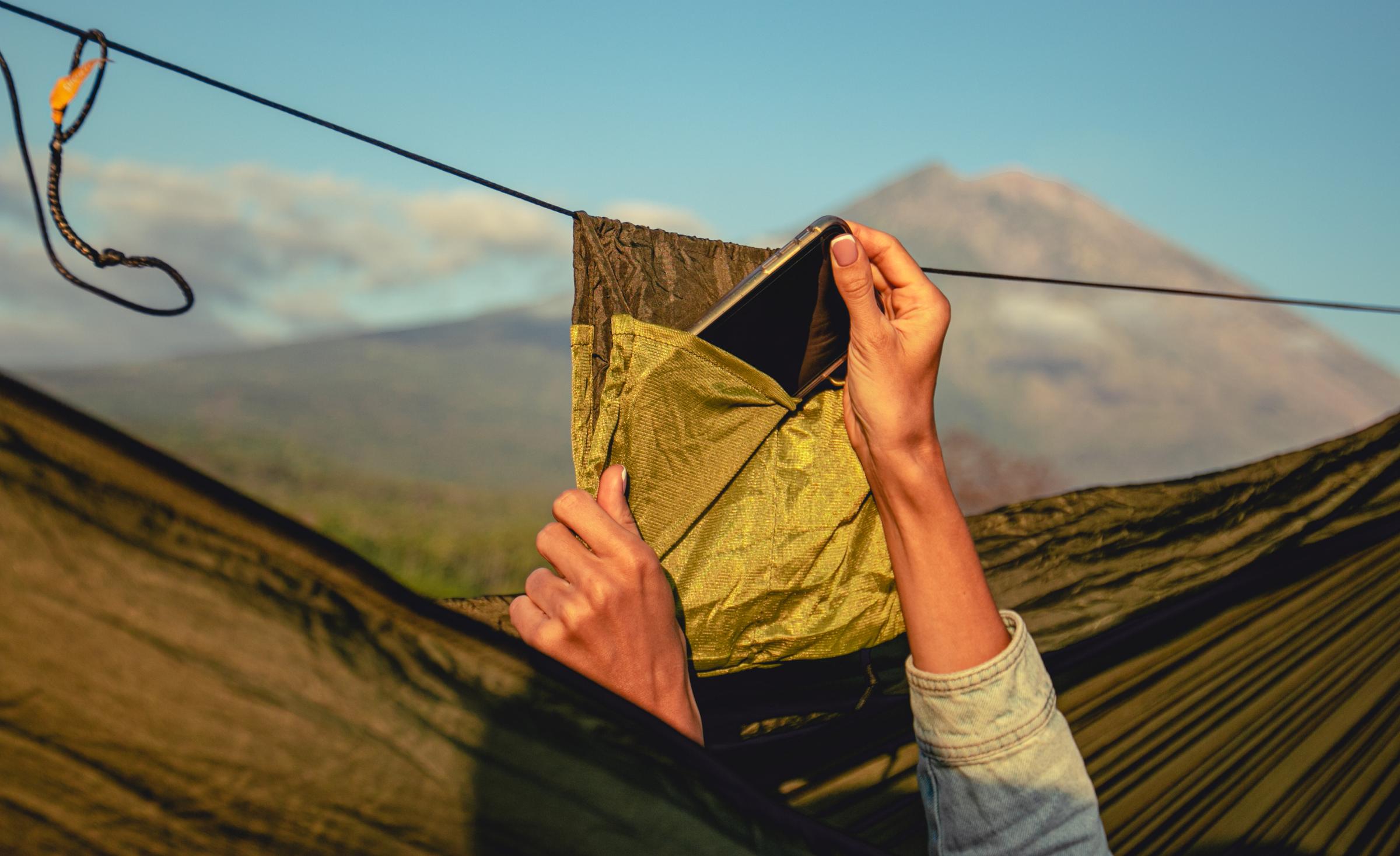 Riippumatto ja hyttysverkko pakattuna pieneksi ja kevyeksi kokonaisuudeksi. Todella helppo käyttöönotto alle minuutissa. Pro Hammock kulkee pienessä kuljetuspussissaan vaivattomasti mukana mihin tahansa.