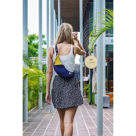 Upcycled Sling Bag on valmistettu korkealaatuisista kierrätysmateriaaleista, jotka ovat jääneet riippumattojen tuotantoprosessista. Tämä tekee jokaisesta laukusta ainutlaatuisen ja samalla auttaa vähentämään jätteen määrää ympäristössämme.