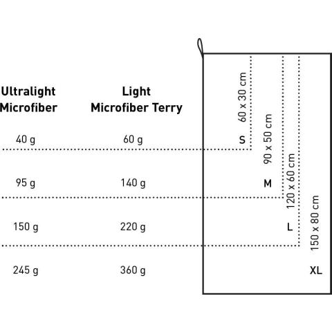 Huippukevyt ja nopeasti kuivuva mikrokuitupyyhe. Soveltuu erityisen hyvin liikkuvaan käyttöön: matkustukseen, kuntosalille, veneilyyn, retkelle jne. Irrotettava ripustuslenkki, jonka avulla voidaan muodostaa lukittu kiinnitys kuivumisen ajaksi vaikkapa repun kylkeen, veneen kaiteeseen tai pyykkinarulle. Toimitetaan käytännöllisessä, erittäin kompaktissa kuljetuspussissa, joka on nyrkkiäkin pienempi. Ylellinen ja pehmeä materiaali, joka kuivaa myös märkänä: pyyhe imee 5 kertaa oman painonsa vettä.