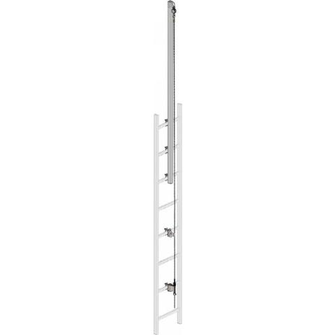 Toimitukseen sisälly: Vaijeri päätöksin molemmissa päissä, ylimpiin tikkaiden puoliin asennettava jatkovarsi joka ulottuu 1,3 m ylimmästä puolesta ylöspäin mahdollistaen turvallisen poistumisen ja järjestelmään ylhäältä tulemisen, ala-. ja yläpään kiinnityspisteet, välivarmistuspisteet ja kiristin.