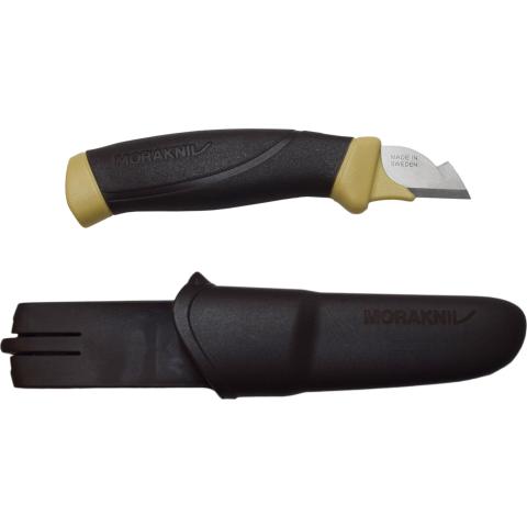 TPU kumipintainen iskunkestävä kahva tarjoaa erinomaisen otteen ja eristävien ominaisuuksien ansiosta sen kanssa on miellyttävää työskennellä pidempiä aikoja myös erittäin kylmissä olosuhteissa. Kahvan suuri koko ja voimakas muotoilu saa puukon istumaan erinomaisesti käteen ja tekee työskentelystä tehokkaampaa ja miellyttävämpää. Ohuuden ansiosta tehokkaasti uppoavan terän materiaali ruotsalainen ruostumaton erikoisteräs, joka on karkaistu 57 HRC kovuuteen. Kovettamisen ja Moraknivin kehittämän kuumakäsittelyn ansiosta pitää terävyytensä pidempään kuin mihin missään jaloteräksestä valmistetussa veitsessä on totuttu. Kokonaispituus: 154 mm. Terän pituus: 34 mm. Terän paksuus: 1,4 mm. Kokonaispaino 94 g. Musta hyvin suunniteltu muovituppi, jonka voi laittaa vyön lisäksi esim. nappiin, ja rinnalle voidaan valita yksi tai useampia muita Morakniv ammattipuukkoja ja tupet voidaan niputtaa yhteen, jolloin kaikki työkalut on helposti saatavilla.