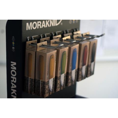 Kahva on valmistettu kahdesta erilaisesta polymeeristä, ja kylkien TPE pinta tarjoaa erinomaisen otteen tehostaen työskentelyä. Sekä kahvassa että tupen kärjessä reikä narulle. Käytännöllinen ja helposti puhdistettava polypropyleenituppi, jonka väri on yhtenevä kahvan värin kanssa. Symmetrinen muoto mahdollistaa puukon laittamisen tuppeen molemmin päin. Puukko lukittuu tuppeen Click Lock lukituksella, joka varmistaa puukon pysymisen tupessa myös kaulanauhassa kuljetettaessa. Puolihimmeän, Scandi Grind profiilihiotun terän materiaali ruotsalainen ruostumaton 12C27 erikoisteräs, joka on käsitelty Moraknivin salaisella lämpökäsittelyllä. Pysyy erittäin terävänä pitkään. Kokonaispituus: 143 mm. Terän pituus: 59 mm. Terän paksuus: 2 mm. Puukon paino vain 58 g. Kokonaispaino 80 g. Materiaali- ja valmistusvirhetakuu 10 vuotta. Valmistusmaa Ruotsi.