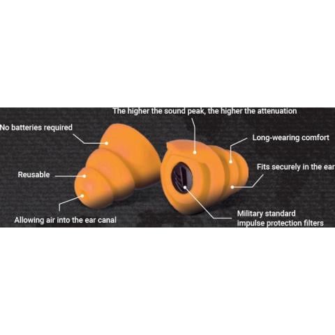 Uusinta passiivisten korvatulppien teknologiaa edustavat korvatulpat ammuntaan, metsästykseen ja muihin vastaaviin olosuhteisiin. Sordin SmartEar Impulse -korvatulpissa on patentoitu impulssisuodatintekniikka, joka vähentää aseen laukausten aiheuttamaa huippuäänenpainetta. Käyttö on erittäin miellyttävää ja turvallista. Uudelleenkäytettävät. Toimitetaan henkilökohtaisen pienen kuljetussäiliön kanssa.