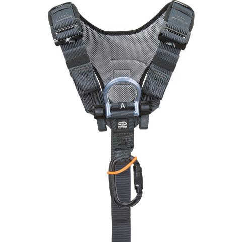Rinnassa metallinen A-kiinnityspiste putoamisen pysäyttämiseen. Ohuen ja valjaidenmukaisen rakenteen ansiosta lenkki ei juurikaan tule eteen silloin kun sitä ei tarvita. Selässä ergonominen pehmustealue parantamassa käyttömukavuutta ja tekemässä pukemisesta helpompaa. Selkäkiinnityspiste puuttuu, jotta varusterepun, ilmapullojen tms. varusteiden kuljettaminen selässä olisi mahdollista.