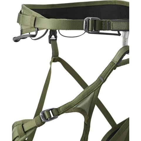 Lantiovyön ja jalkalenkkien neljä kevyttä ja kestävää alumiinista Slide Block -solkea voidaan avata kokonaan, mikä helpottaa valjaan pukemista ja säätämistä yksilöllisiin tarpeisiin.