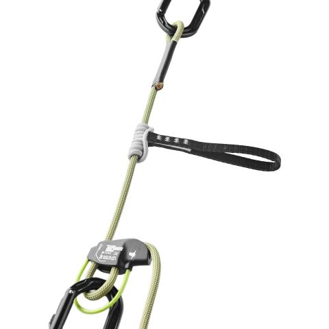 Taktinen köysilaskeutumispakkaus omatoimiseen evakuoitumiseen, tai valjaiden varassa roikkuvan henkilön laskemiseen.