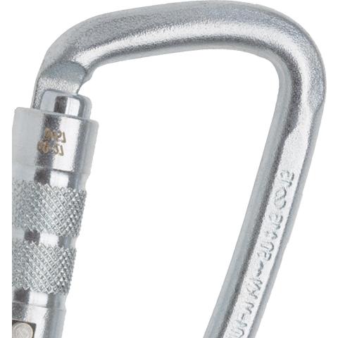 Offset-D mallinen asymmetrinen terässulkurengas korkeanpaikantyöskentelyyn. Erittäin vahva malli, jossa virhekäytön minimoiva Twist Lock automaattilukitus, jonka ansiosta portti ei voi unohtua lukitsematta. Hyvä valinta silloin kun sulkurengasta avataan ja suljetaan useasti, ja toimii mainiosti myös käsineet kädessä. Portin avauma 20 mm.
