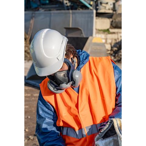 Suodattimissa vettä hylkivä rakenne ja ne ovat uudelleenkäytettäviä. 4-pistepääpanta lisää käyttömukavuutta käyttöolosuhteiden muuttuessa ja on suunniteltu turvalliseen käyttöön myös kosteissa ja märissä työskentelyolosuhteissa.
