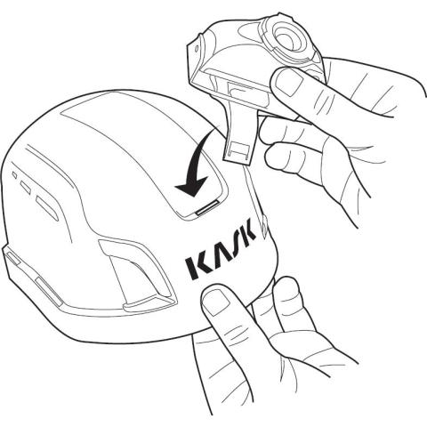 Kask KL-1 otsavalaisimen kiinnikelevy työkypärän etukoloon. Yhteensopiva esim. Kask Primero, Zenith X ja Quantum -sarjojen kypärien kanssa. Mahdollistaa visiirin yhtäaikaisen käytön valaisimen kanssa, ja visiiri myös mahtuu aukeamaan lähes ylös asti, jotta käyttö on miellyttävää.