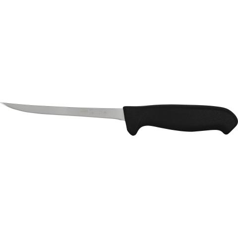 Erinomainen fileerausveitsi ammattikäyttöön kalojen käsittelyyn. Erittäin ohut, notkea ja tarkka terä. Työ onnistuu sujuvasti, turvallisesti ja siistillä jäljellä. Toimitetaan bulkkiaskeittain ilman teräsuojaa (vain pahvinen toimitussuoja terien ympärillä) ja ilman EAN-koodia veitsessä.