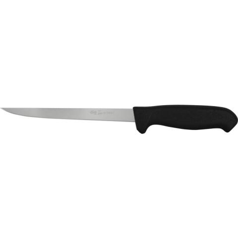 Erinomainen fileerausveitsi ammattikäyttöön kalojen käsittelyyn. Erittäin ohut, notkea ja tarkka terä. Työ onnistuu sujuvasti, turvallisesti ja siistillä jäljellä. Toimitetaan bulkkiaskeittain ilman teräsuojaa (vain pahvinen toimitussuoja terien ympärillä) ja ilman EAN-koodia veitsessä.