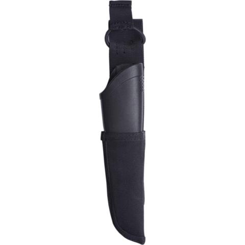 Musta MOLLE kotelo Morakniv Buschraft -sarjan puukoille. Tyypillisiä käyttäjäryhmiä: poliisi, rajavartiolaitos, tulli ja sotilaat erikoisjoukkoineen.