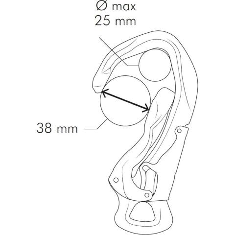 Kevyt, kaksitoimisella automaattilukituksella varustettu vahva kiinnitin 38 mm portin avaumalla. Mahdollistaa poikkeuksellisen helpon kiinnittymisen yhdellä kädellä käyttäen halkaisijaltaan max. 25 mm rakenteisiin: Ergonomisen muotoilun ansiosta käsi ei pääse tielle häiritsemään rakenteeseen kiinnittymistä. Korkealuokkainen malli kuumataottua alumiinia. Soveltuu työkäyttöön osaksi henkilökohtaista putoamissuojausjärjestelmää mm. liitosköyden päähän.
