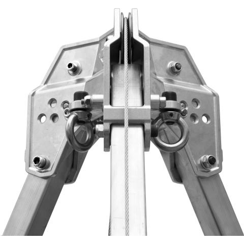 Nopeasti kasattava kolmijalka kolmella integroidulla taljapyörällä ja kolmella kiinteällä yläankkuripisteellä. Soveltuu säiliötyöhön ja vastaaviin olosuhteisiin, joissa henkilö tai taakka tarvitsee nostaa tai laskea, tai pysäyttää käyttäjän putoaminen. Innovatiiviset kaksiasentoiset kumitassut: vaakasuora asento koville ja tiiviille alustoille ja pystysuora, kärjellään seisova asento pehmeille alustoille (mahdollistaa tehokkaan käytön mm. nurmikolla). Teleskooppijalat vedetään sopivaan pituuteen ja lukitaan integroiduilla sokkatapeilla. Tämä malli ei vaadi kettinkejä tms. jalkojen väliin.