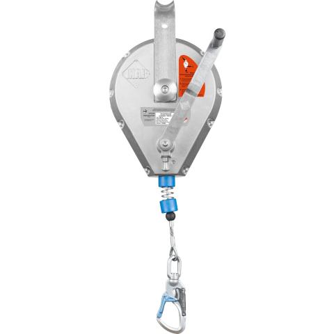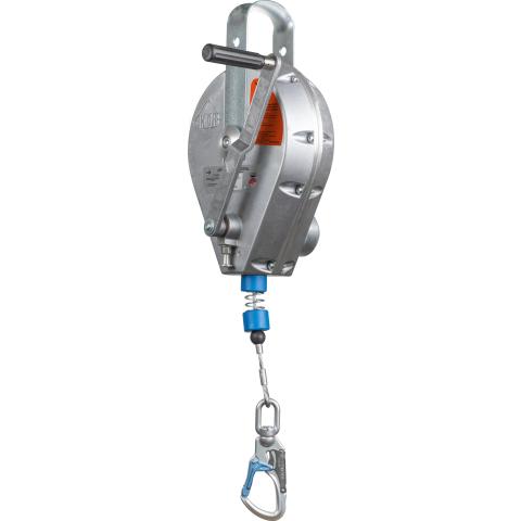 Tajuntansa menettänyt työpari voidaan nostaa nopeasti ja turvallisesti esim. suljetussa tilassa olevan kaasun yläpuolelle tai pois ahtaasta tilasta. Kelan sisällä integroitu nykäyksenvaimennin, joka rajoittaa käyttäjään kohdistuvia nykäysvoimia putoamisen pysäyttämisessä. Kuori alumiinia, liitoselin vaijeri. Vaijeri varustettu automaattisesti lukkiutuvalla liitoskarabiinilla. Käyttäjän alta vaadittava esteistä vapaa turvaetäisyys, kun laite on kiinnitetty suoraan käyttäjän yläpuolelle: 2,4 m. Paino 16 kg. Ulkomitat: 630x275x220mm. CE DIN EN360/1496. Tarkastustoiminta nopeasti Suomessa. Käyttöikä 10 vuotta.