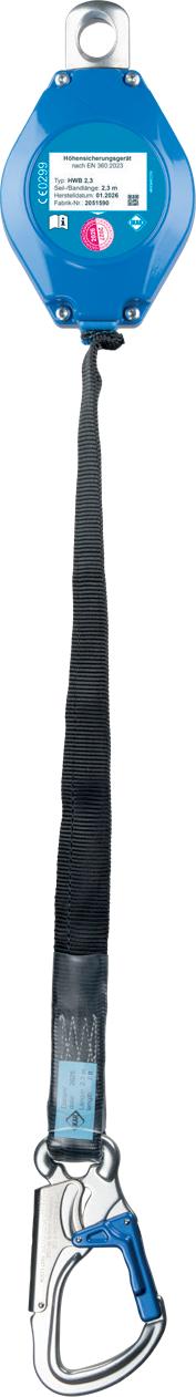 2,3 m automaattisesti sisään kelautuva turvatarrain integroidulla nykäyksenvaimentimella. Pysäyttää putoamisen ja vaimentaa nykäysvoimia. Kiertymisen estävä leikarikiinnitys. Voidaan käyttää kaikissa asennoissa.