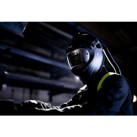Soveltuu erityisesti pään yläpuolella tapahtuviin töihin sekä hitsaukseen vaikeissa asennoissa. Ihanteellinen monipuolisiin työtehtäviin, joissa vaihdellaan usein kirkkaan linssin ja hitsauslinssin välillä. Maskin sisällä poikkeuksellisen miellyttävä ilmanvirran jakauma.