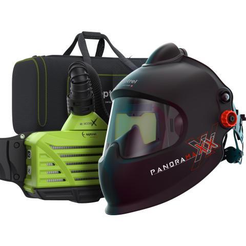 Ready to weld package panoramaxx pure air L - black: Fresh air Laser helmet and e3000X (ATEX) PAPR green, 18h Power battery and e3000/X bag.