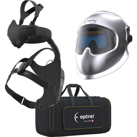 Ready-To-Weld käyttövalmis pakkaus hitsaus- ja hiontatöihin vaativaan ammattikäyttöön. Sisältää Optrel Panoramaxx CLT hitsausmaskin ja Optrel Swiss Air moottoripuhallin hengityksensuojaimen Comfort Half Mask puolinaamarilla, Control Panel ohjauspaneelilla, sekä laukun.