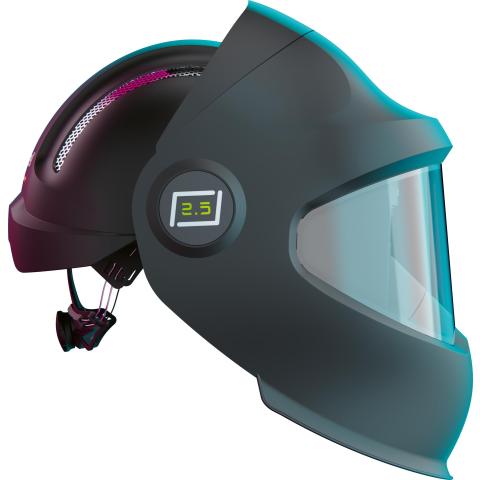 Automaattisesti tummuva hitsaus-/hiontamaski kirkkaalla 2,5 XXL panoraamalinssillä ja Slide-Up suodattimella joka liukuu maskin sisällä ylös ja alas ulkopuolista nuppia kääntämällä. True Color: Luonnollinen väritoisto. Sisältää mustan irrotettavan EN397 teollisuuskypärästandardin mukaisen kypäräinsertin.