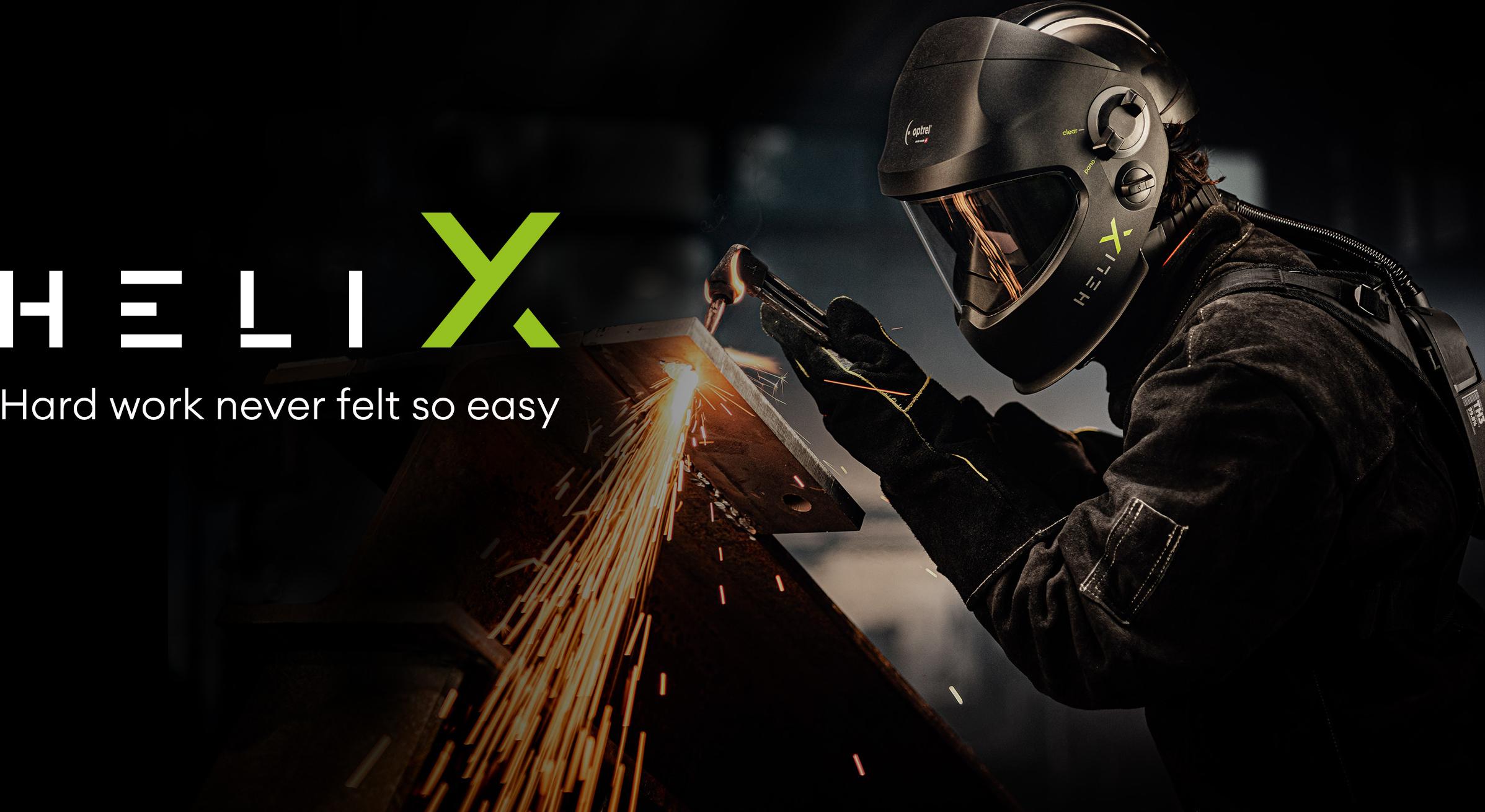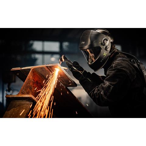 Ready-To-Weld käyttövalmis pakkaus hitsaus- ja hiontatöihin vaativaan ammattikäyttöön. Sisältää Optrel Helix 2,5 hitsausmaskin irrotettavalla mustalla Helix Hard Hat EN397 teollisuuskypäräinsertillä, sekä Optrel Swiss Air moottoripuhallin hengityksensuojaimen Comfort Half Mask puolinaamarilla, Control Panel ohjauspaneelilla, sekä laukun.