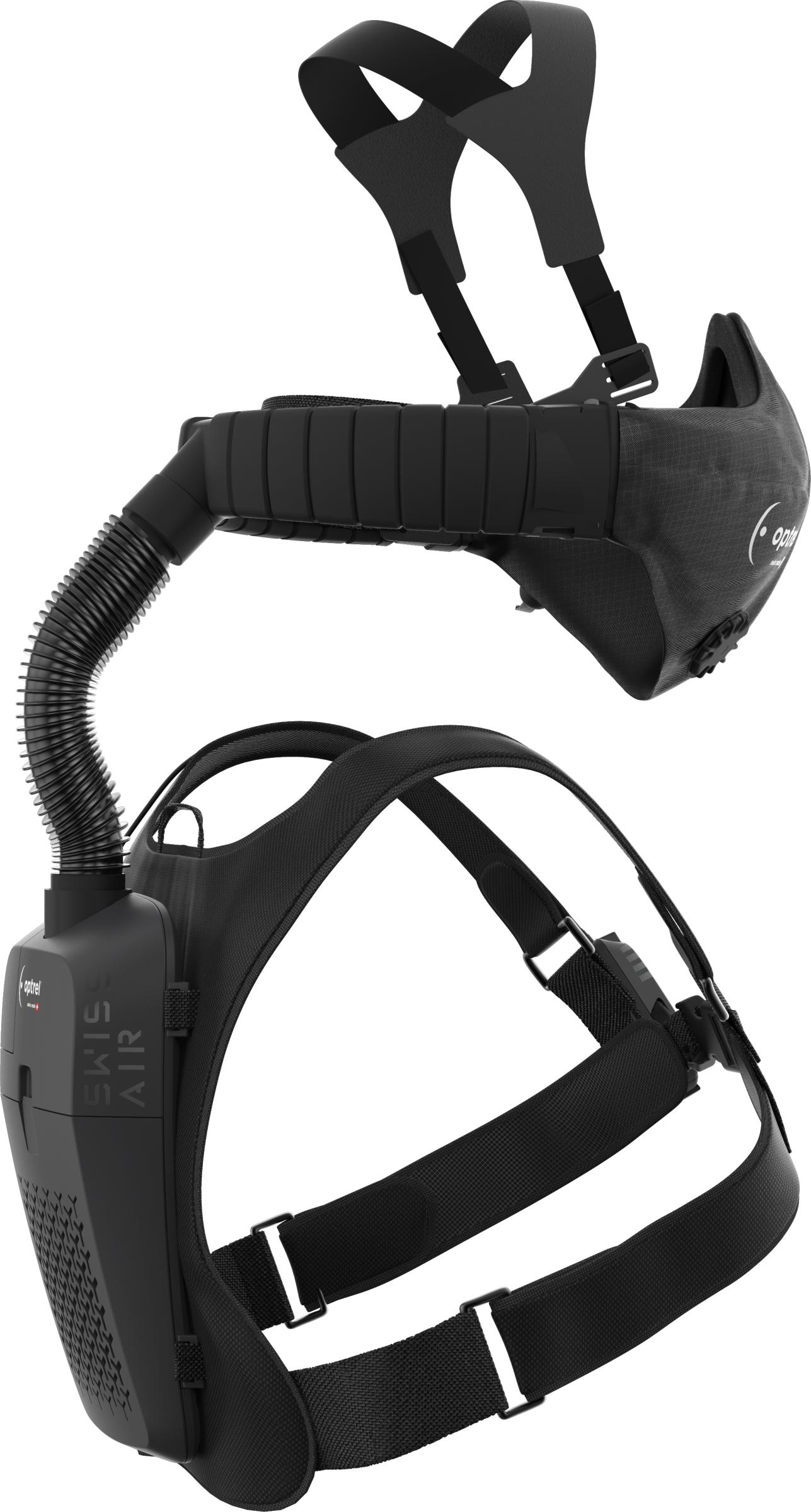 Suunniteltu täydellisesti yhteensopivaksi Optrel Swiss Air moottoroidun puhallinhengityksensuojaimen kanssa käytettäessä (puolinaamarin kanssa; tässä maskissa ei ole puhallinliitäntää)