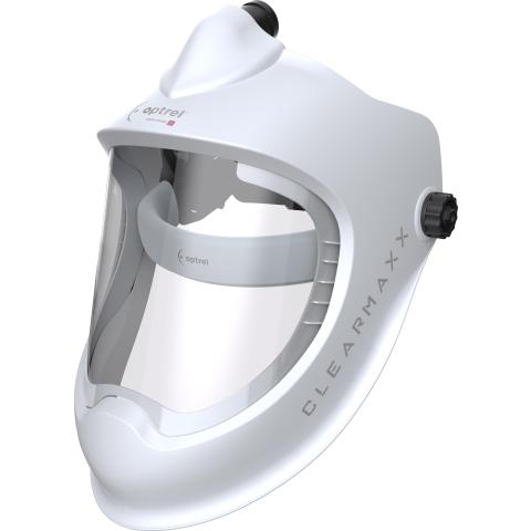 Kokokasvosuojain kirkkaalla linssillä, ilmansyöttöadapterilla ja koko kasvojen alueen kattavalla ilmakanavoinnilla. Suunniteltu vaativaan ammattikäyttöön lääketeollisuuden, terveydenhuollon jne. tarpeisiin. Valkoinen.