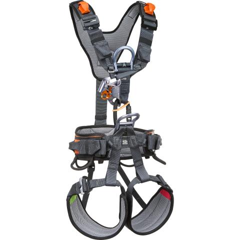 Rinnassa metallinen A-kiinnityspiste putoamisen pysäyttämiseen. Ohuen ja valjaidenmukaisen rakenteen ansiosta lenkki ei juurikaan tule eteen silloin kun sitä ei tarvita. Selässä ergonominen pehmustealue parantamassa käyttömukavuutta ja tekemässä pukemisesta helpompaa. Selkäkiinnityspiste puuttuu, jotta varusterepun, ilmapullojen tms. varusteiden kuljettaminen selässä olisi mahdollista.