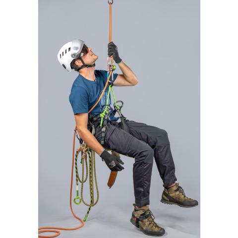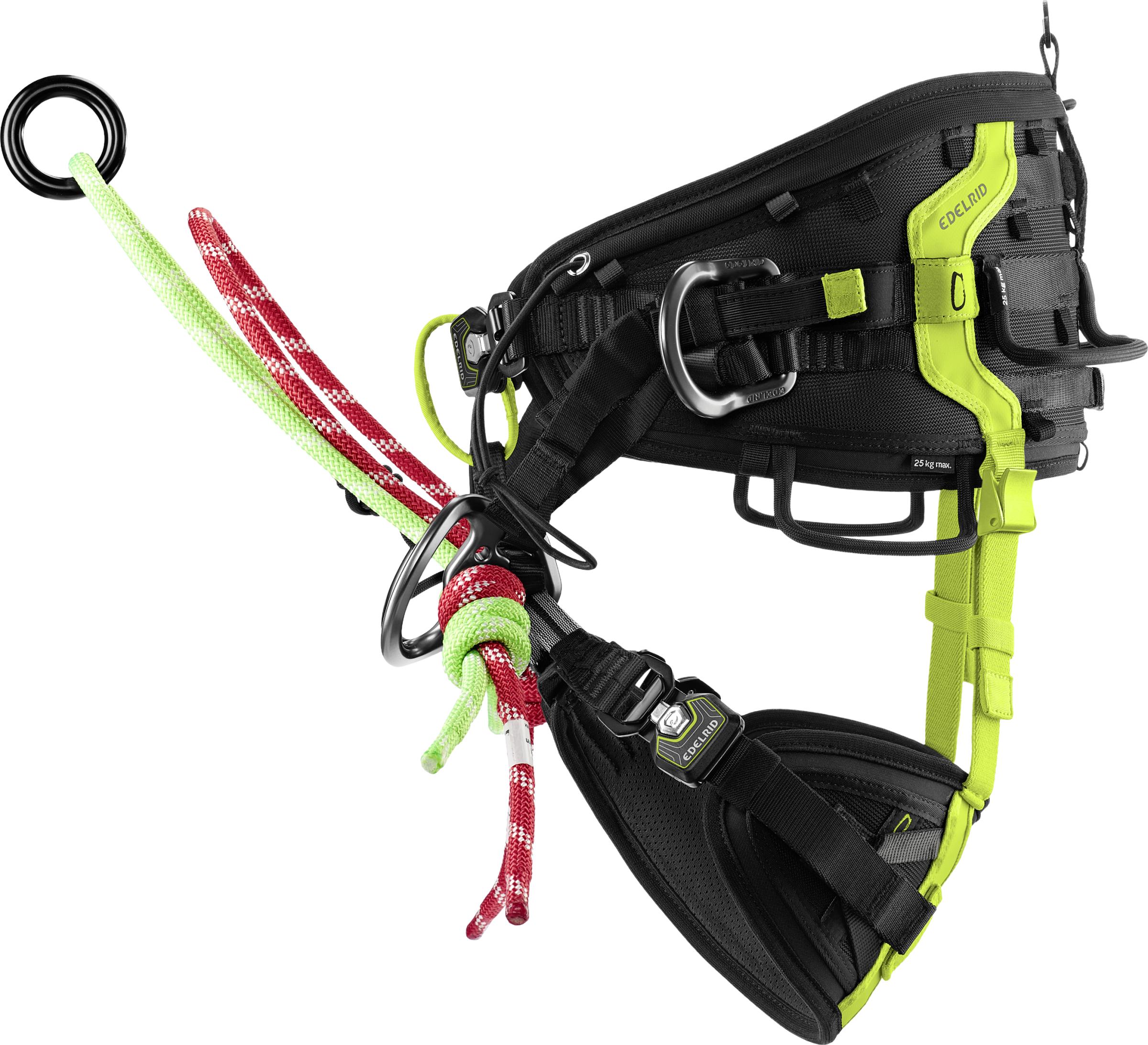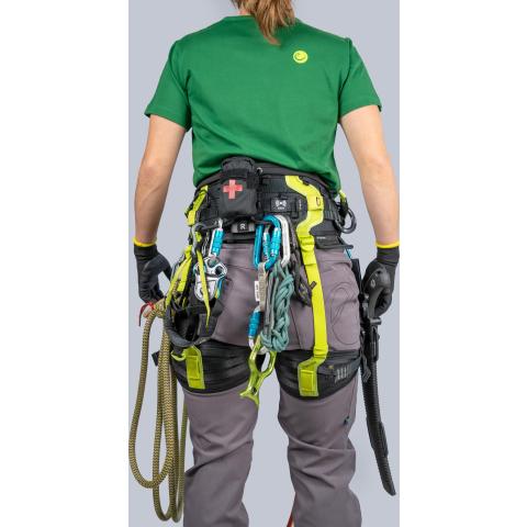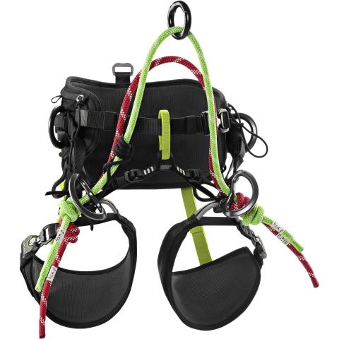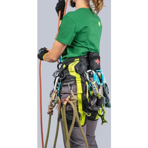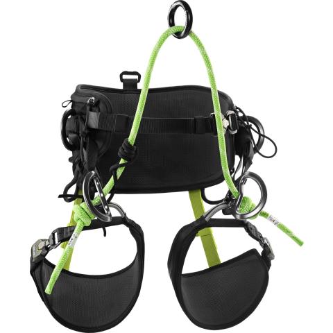 The most versatile tree-care harness of all times. With a variety of rope bridge configurations and optional SRT BRIDGE for safe and comfortable working on single ropes. The innovative 3D Vent Technology, in combination with the wide, semi-rigid padding, ensures unsurpassed hanging comfort and at the same time good breathability. 4 large gear loops, numerous attachment possibilities for gear carabiners as well as a device for suspending a chainsaw round off the complete package of this unique climbing harness.