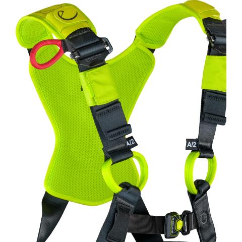 Olkahihnoissa pidikkeet, joihin voi kiinnittää liitosköyden haarojen kiinnittimet (esim. Edelrid Shockstop liitosköyden haarat), tai muun pienen työkalun tai varusteen. Nämä kiinnityspisteet ovat irrotettavissa sekä siirrettävissä haluttuun paikkaan valjaissa. Mikäli kaksihaaraisen nykäyksenvaimenninliitosköyden varaan pudotaan, ja toinen haaroista on kiinni pidikkeessä, niin pidike päästää kiinnittimen nykäisystä vapaaksi, ja sallii liitosköyden nykäyksenvaimentimen toimia suunnitellulla tavalla. Toimii myös muussa yli 5 kg nykäisyssä. Parantaa turvallisuutta työmaalla, parantaa käyttömukavuutta ja tehostaa työskentelyä. Pidikkeet on käännetty 90-astetta, jotta käyttö olisi mielekästä. Tämä on mainio ominaisuus, kun työtehtäviin kuuluu tikkailla, rakennustelineillä tai muissa metallirakenteissa liikkumista, tai tarpeita saada työvälineet helposti saavutettavaan paikkaan valjaissa.