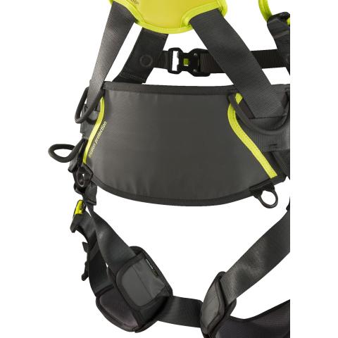 Erittäin litteän pikasolkirakenteen ansiota valjaita on miellyttävää käyttää myös istuessa ja esim. ajaessa. Pikalukitus on kolmetoiminen turvallisuuden maksimoimiseksi. Olkahihnoissa automaattisesti lukkiutuvat ja helposti säädettävät Easy Glider säätösoljet. 4 kulutussuojattua varuste-/työkalulenkkiä max. 25 kg varusteille.