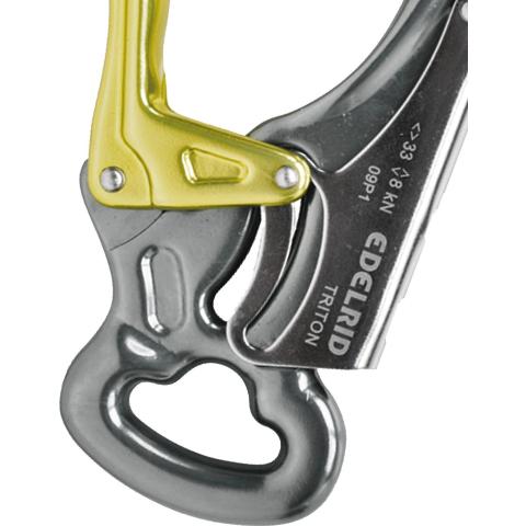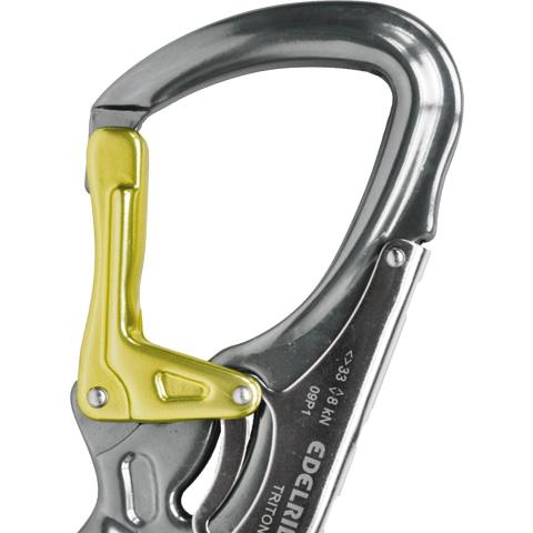 Kevyt kaksitoimisella automaattilukituksella varustettu vahva alumiinikiinnitin 25 mm portin avaumalla. Mahdollistaa yhdellä kädellä käyttäen helpon kiinnittymisen halkaisijaltaan erilaisiin rakenteisiin ja ankkuripisteisiin.