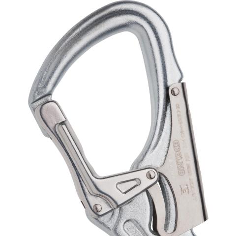 Erittäin vahva teräksinen kiinnitin 25 mm portin avaumalla. Kaksitoiminen portti automaattilukituksella. Mahdollistaa yhdellä kädellä käyttäen helpon kiinnittymisen halkaisijaltaan erilaisiin rakenteisiin ja ankkuripisteisiin.