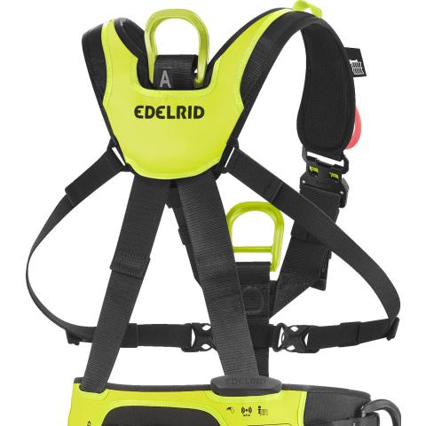 Lantiovyöllä neljä muotoiltua varustelenkkiä yhteensä 12 sulkurenkaalle. Maksimipaino 25 kg. Takaosassa lisäksi kaksi nauhallista paikkaa muille lisävarusteille kuten ensiapupakkaukselle. Molemmissa jalkalenkeissä lisäpaikka Edelrid SM Clip työkalukiinnittimille. Olkahihnoissa pidikkeet, joihin voidaan laittaa radiopuhelin tai esim. ohjata putoamisen pysäyttävän köysitarraimen nykäyksenvaimennin sopivasti. Täyttää Euroopan CE EN361, EN358 ja EN813 standardien vaatimukset ja lisäsertifioitu 150 kg asti (=käyttäjän maksimipaino varusteineen) sekä ANSI / ASSE Z359.11-2014. Materiaalit: Kuituosat polyesteri, säätösoljet teräs, kiinnityspisteet alumiiniseos. Maksimielinikä 14 vuotta (= 4 vuotta varastointia + 10 vuotta käyttöä).