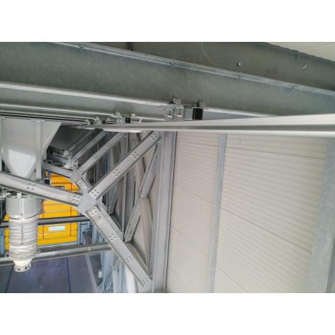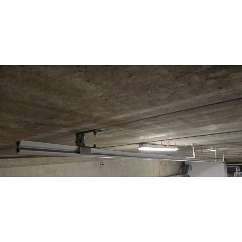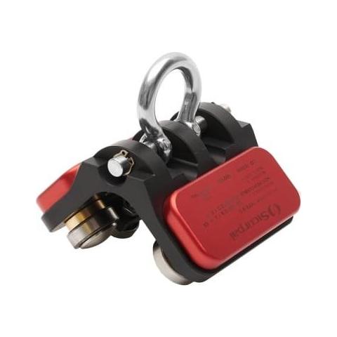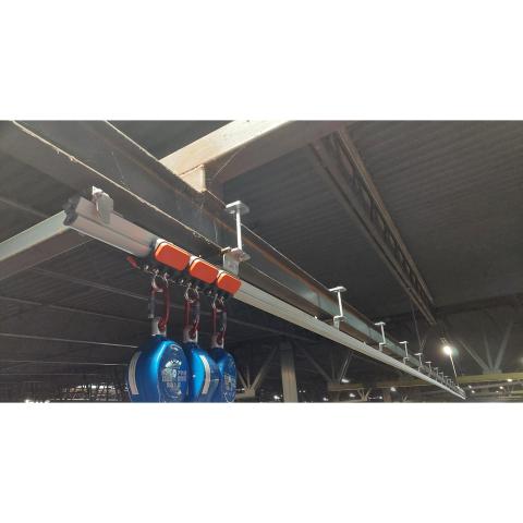 Henkilösuojainten kiinnityspisteenä toimiva kahdeksanpyöräinen liukuvaunu kulkee kiskossa esteettä asennuskorkeudesta, asennosta tai kulmien ohituksesta riippumatta. Kiskoon voidaan asettaa yksi tai useampi vaunu käyttötarkoituksesta riippuen.
