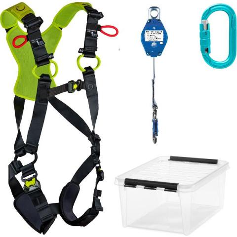 Valmis putoamissuojainratkaisu työskentelyyn henkilönostimissa ja muissa vastaavissa olosuhteissa. Osat on valittu siten että ne ovat mahdollisimman helppokäyttöisiä ja virhekäytön mahdollisuus on pyritty minimoimaan.