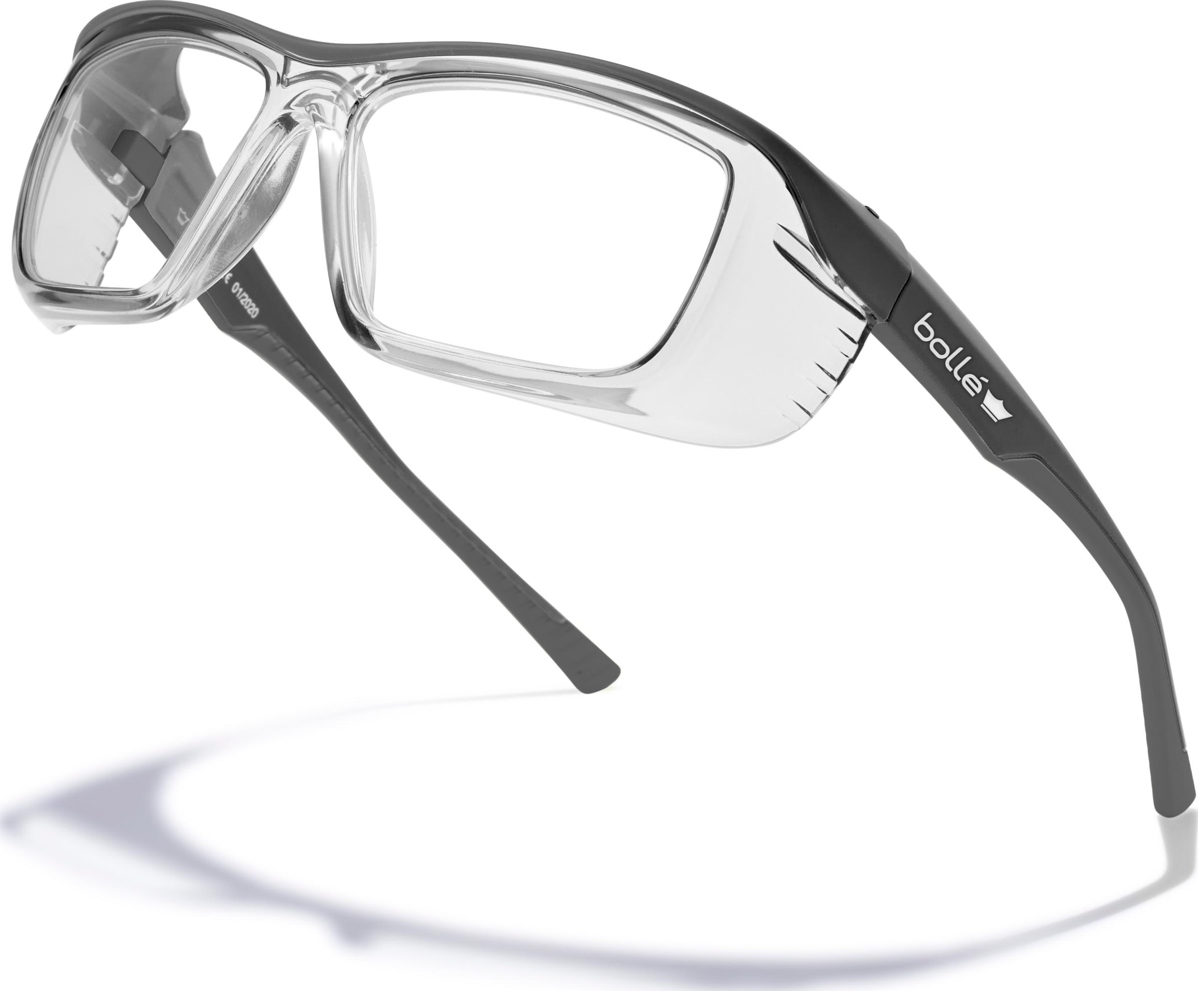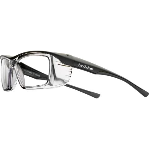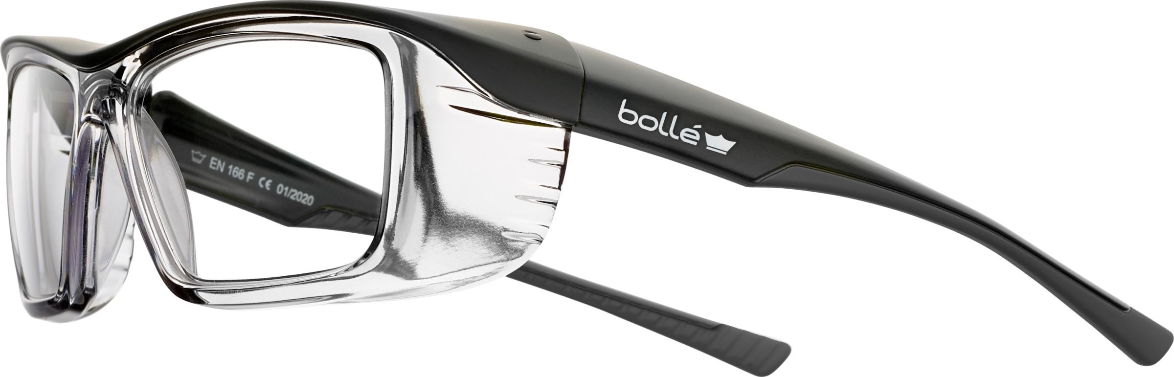 Suojalasikehykset reseptilinsseille työkäyttöön. Laajan näkökentän tarjoava ja kattavasti suojaava malli, joka tarjoaa lisäsuojaa myös ylhäältä ja alhaalta tuleville uhkille. Erittäin kevyesti sävytetyt sivusuojat integroitu osaksi kehyksen reunaa. Kokonaan ruuvivapaa rakenne. Sporttinen design.