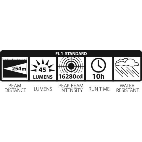 3C valaisimessa: Valon kantama 269 metriä, valon voimakkuus 18067 candelaa, valovirta 60 lumenia. Paloaika 4h 30min.